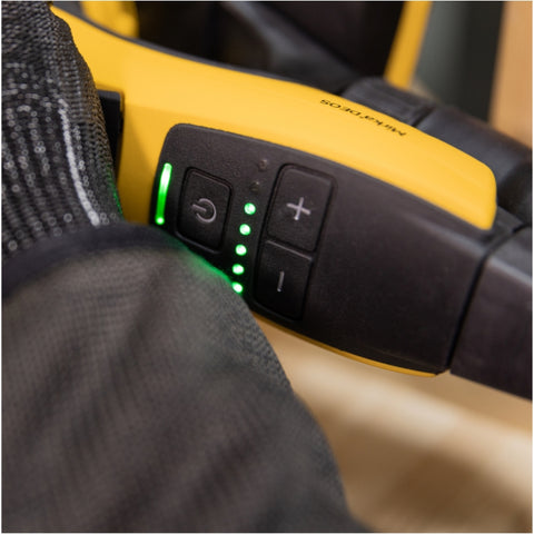 The Mirka DEOS features an integrated vibration sensor and Bluetooth low energy technology. The vibration sensor makes it possible to view the current vibration level through the myMirka app.