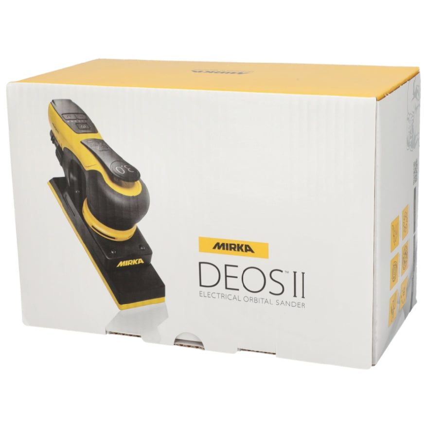 Mirka DEOS II 353XCV 3.2" x 5.2" Electric Orbital Vacuum Ready Sander 3.0mm Orbit (MID3534044US) is a powerful and compact direct electric orbital sander makes quick work of tight spaces. The successful Mirka DEOS sander has reached a new generation. The new Mirka DEOS II features a list of improvements to make sanding even easier than before.