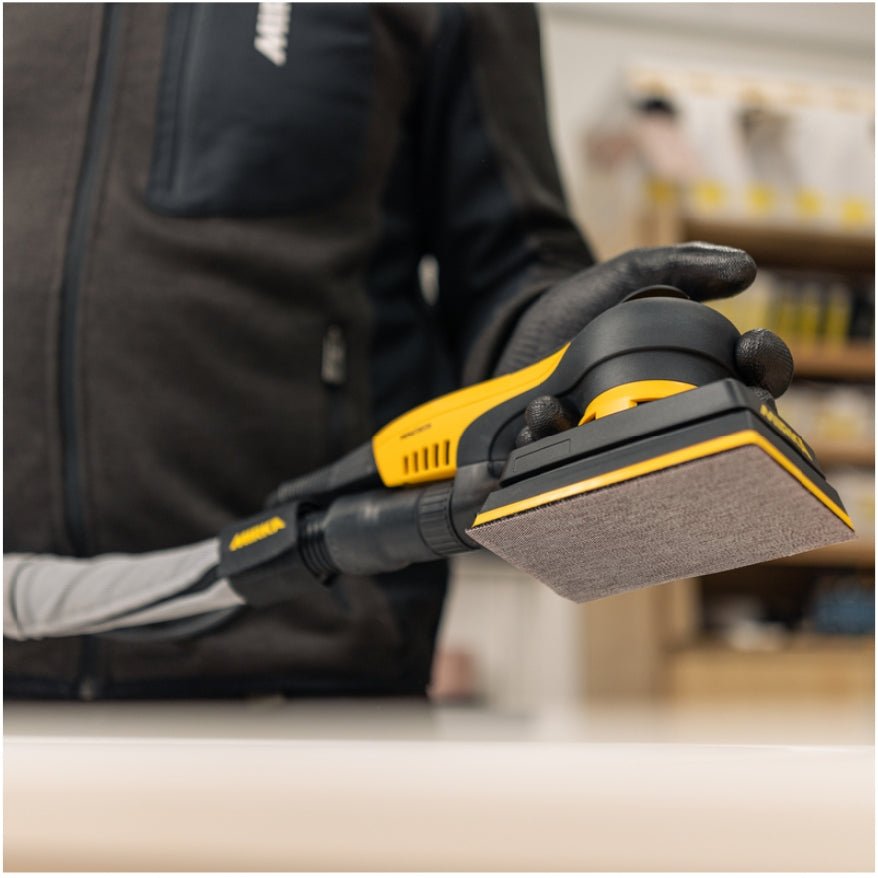 Pair the DEOS II 353X sander with 3.2" x 5.2" grip abrasives sheets such as Mirka Abranet, Mirka Abranet ACE, Mirka Iridium or Mirka Ultimax Ligno for excellent dust extraction and sanding performance.